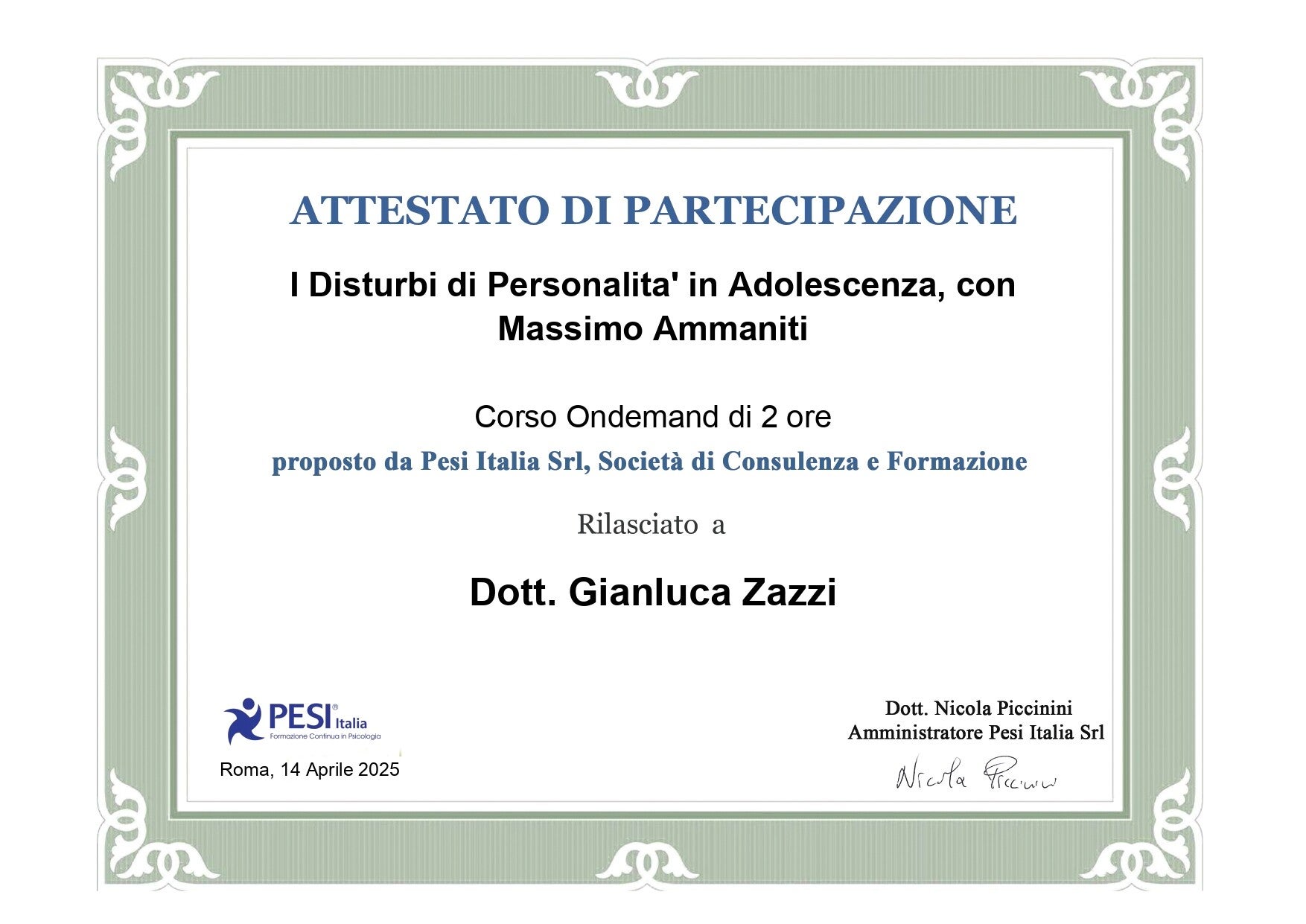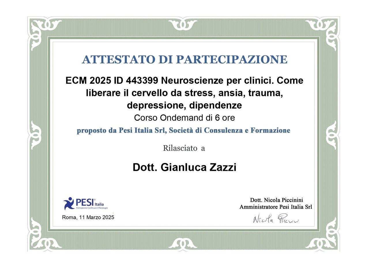 Consiglio vivamente il Dott. Gianluca Zazzi a chiunque cerchi un professionista serio, competente e profondamente umano, capace di accompagnare con rispetto e professionalità nel proprio percorso di benessere psicologico.